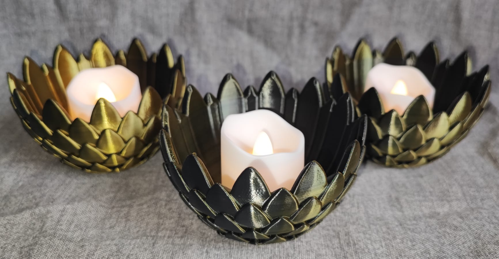 Art 0133 Drachenschuppen Teelichthalter| 3D-gedruckt| 5*8cm | PLA schwarz gold Seiden Deko Home Geschenk Art 0133