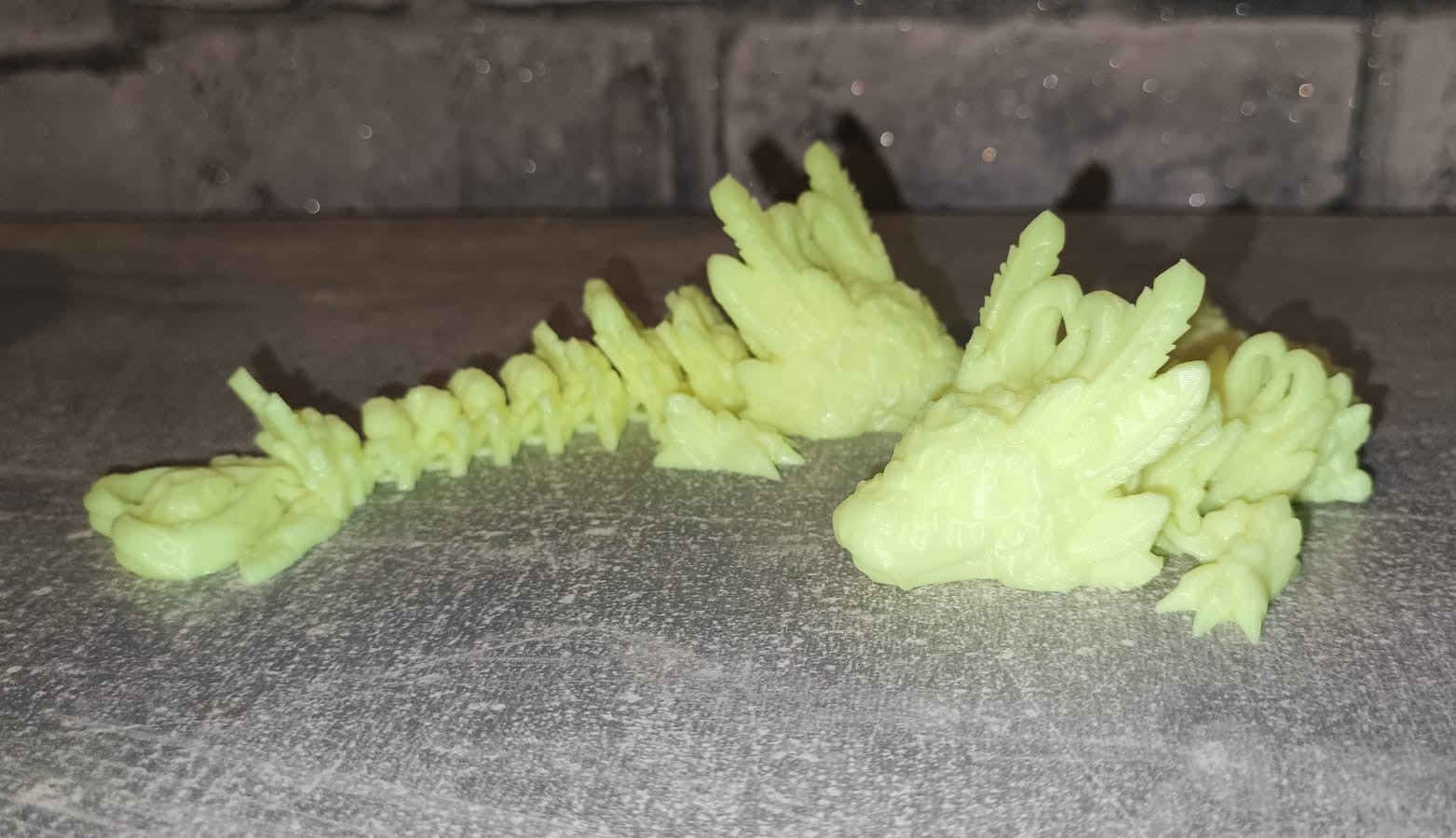 Dieses detailreiche 3D-gedruckte Deko-Objekt wurde mit Präzision gefertigt und vereint Eleganz mit spielerischer Beweglichkeit. Dank seines flexiblen Designs lässt sich der Drache geschmeidig bewegen und ist ein echter Blickfang für jedes Regal oder Schreibtisch.