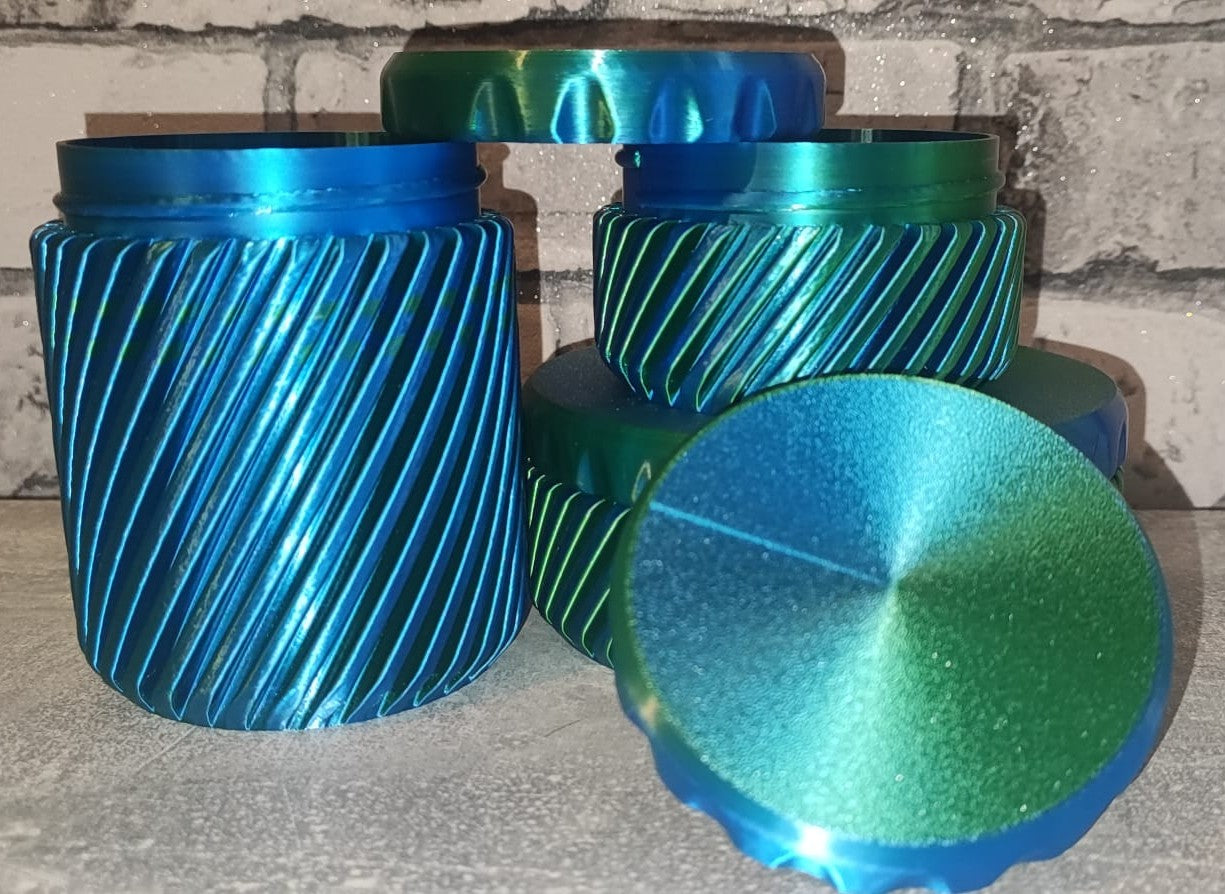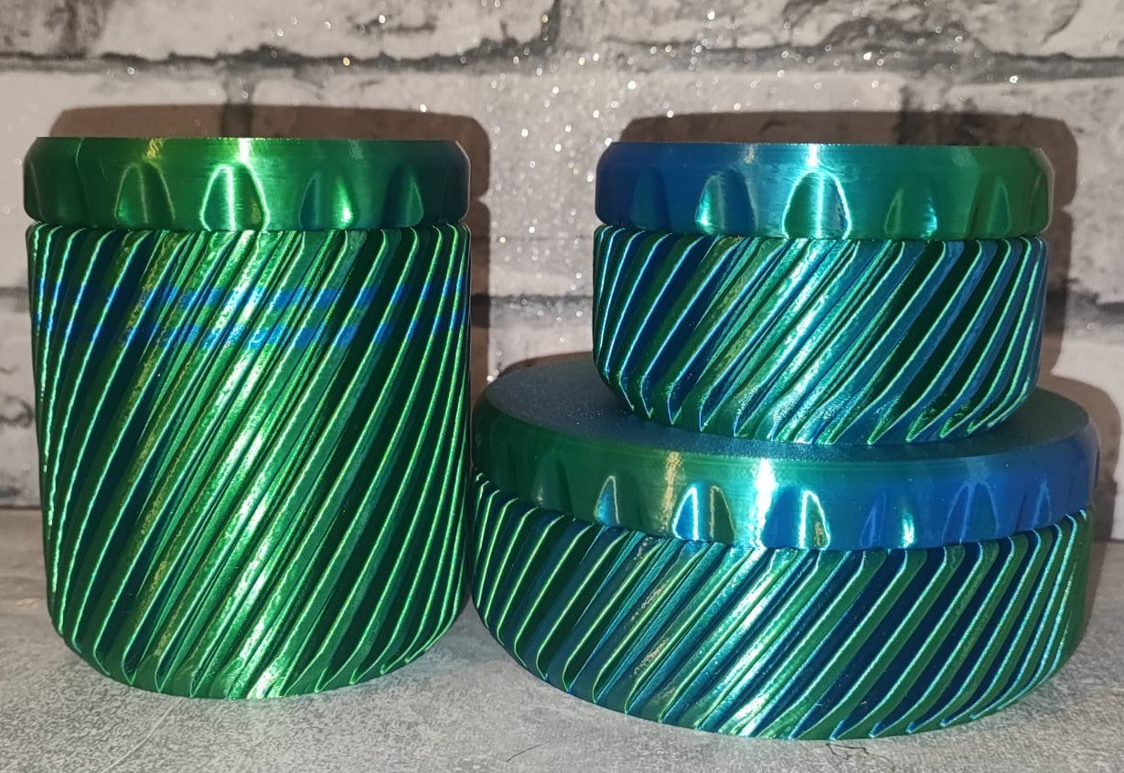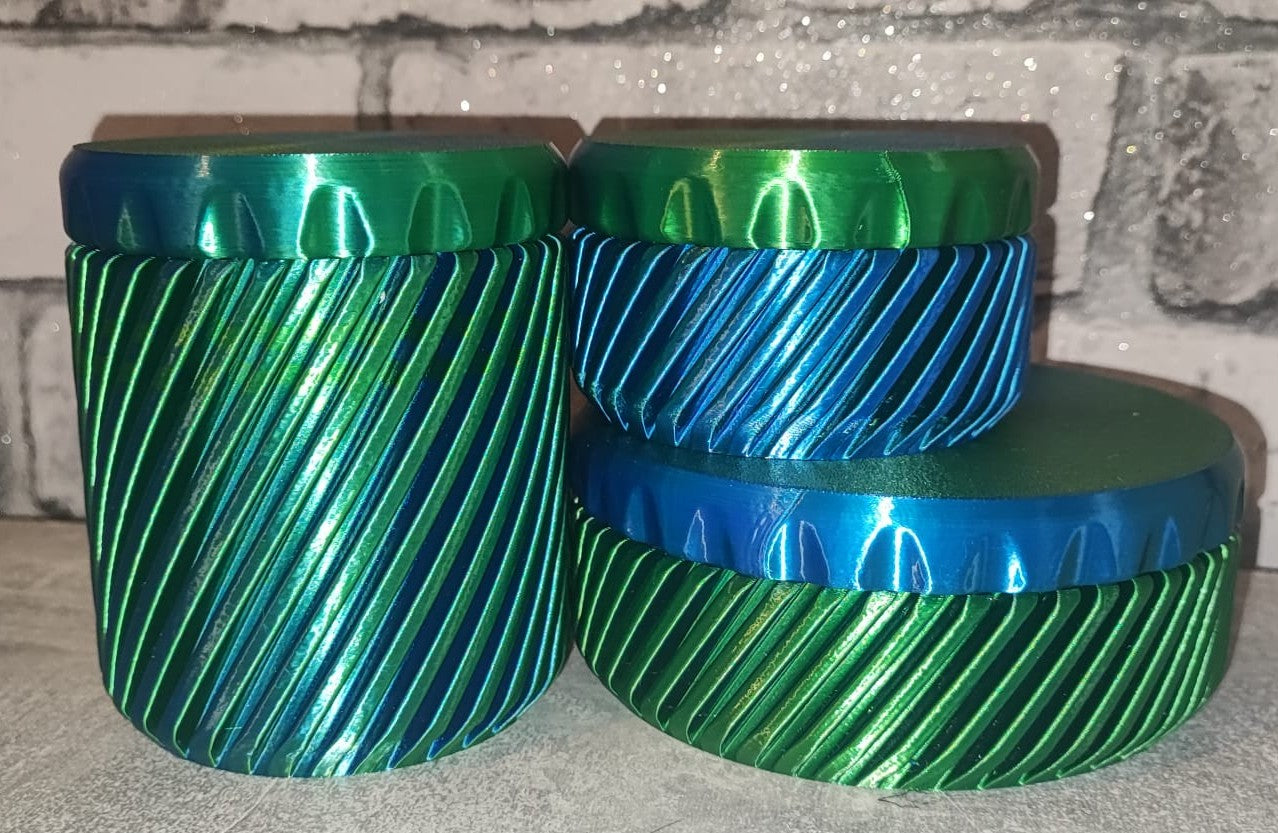 Art 0240 Deko Schraub Dosen 3er -Set | 3D-gedruckt |klein, mittel, groß flach Dose | PLA blau grün schimmernd Deko Home Geschenk