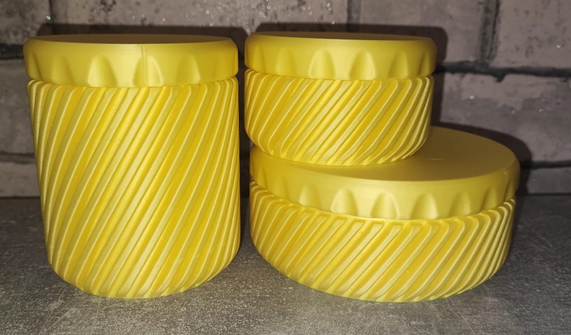 Art 0298 Deko Schraub Dosen 3er -Set | 3D-gedruckt |klein, mittel, groß flach Dose | PLA gelb Deko Home Geschenk