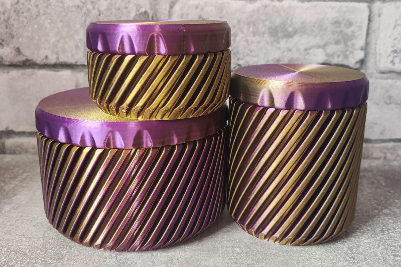 Art 0294 Deko Schraub Dosen 3er -Set | 3D-gedruckt |klein, mittel, groß Dose | PLA lila gold schimmernd Deko Home Geschenk