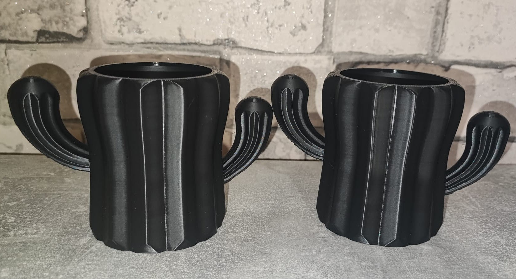 Art 0302 Deko Kaktus Behälter | 3D-gedruckter Stiftehalter/behälter |ca. 8,5 hoch & 7cm Durchmesser, Gesamtbreite 13cm | PLA schwarz Deko Home Geschenk