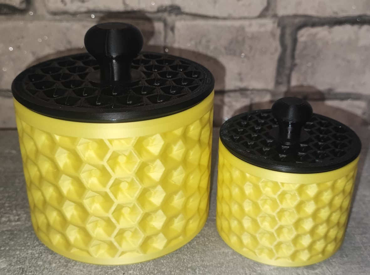 Art 0307 Deko Honigwaben Behälter 2er Set| 3D-gedruckt | kleiner und mittlerer Behälter| PLA gelb| Deko Home Geschenk