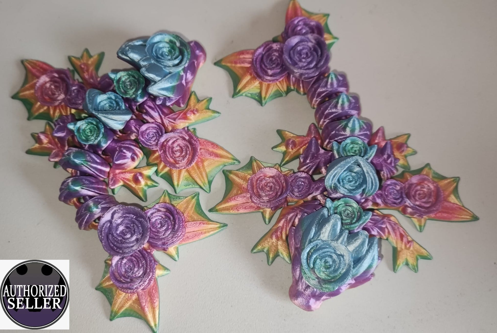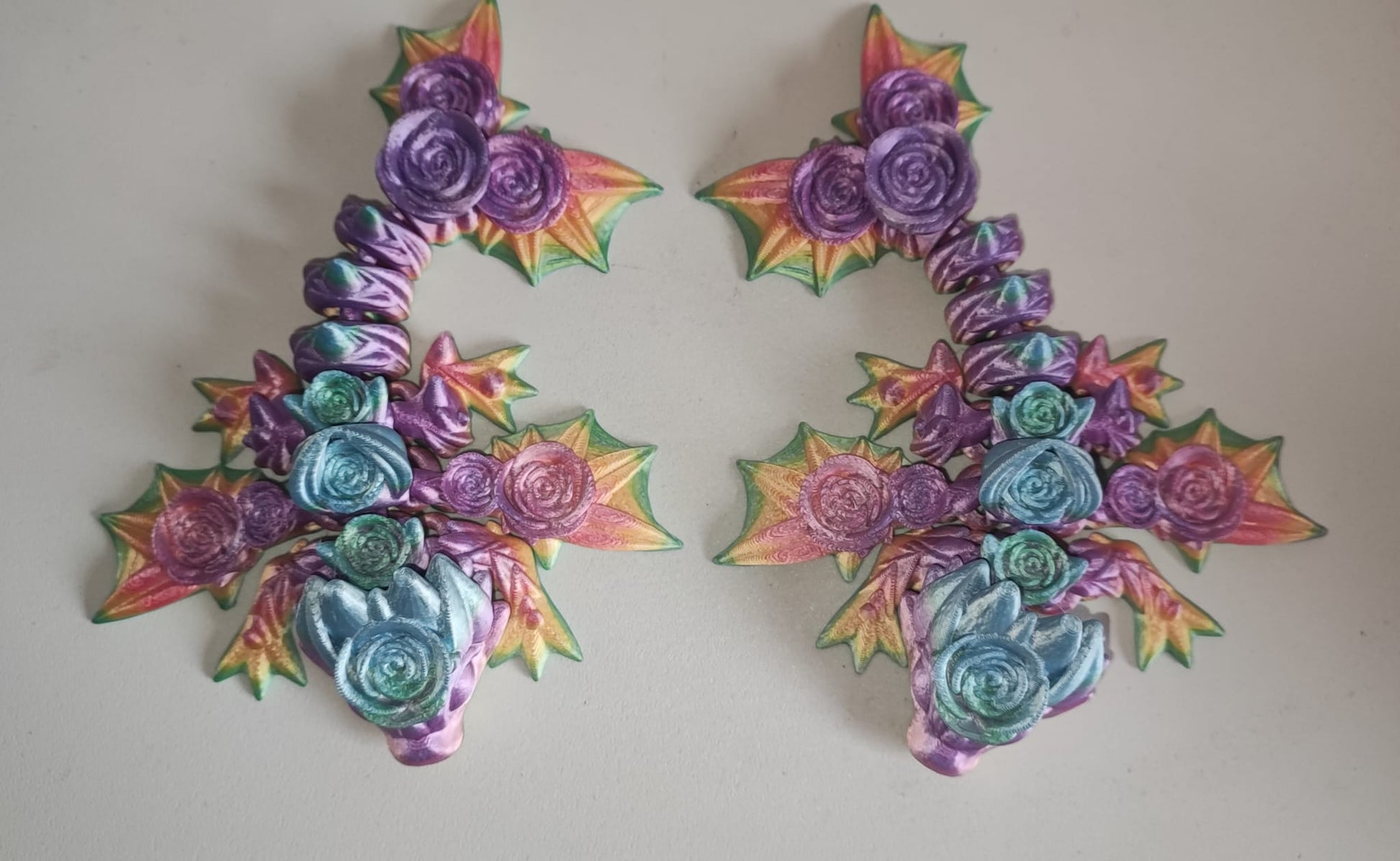 Art 098 Flexi Rosendrache| 3D-gedruckter beweglicher Drache | ca. 15,0 cm lang | PLA Farbverlauf Deko & Geschenk für Fantasy-Fans Art.098
