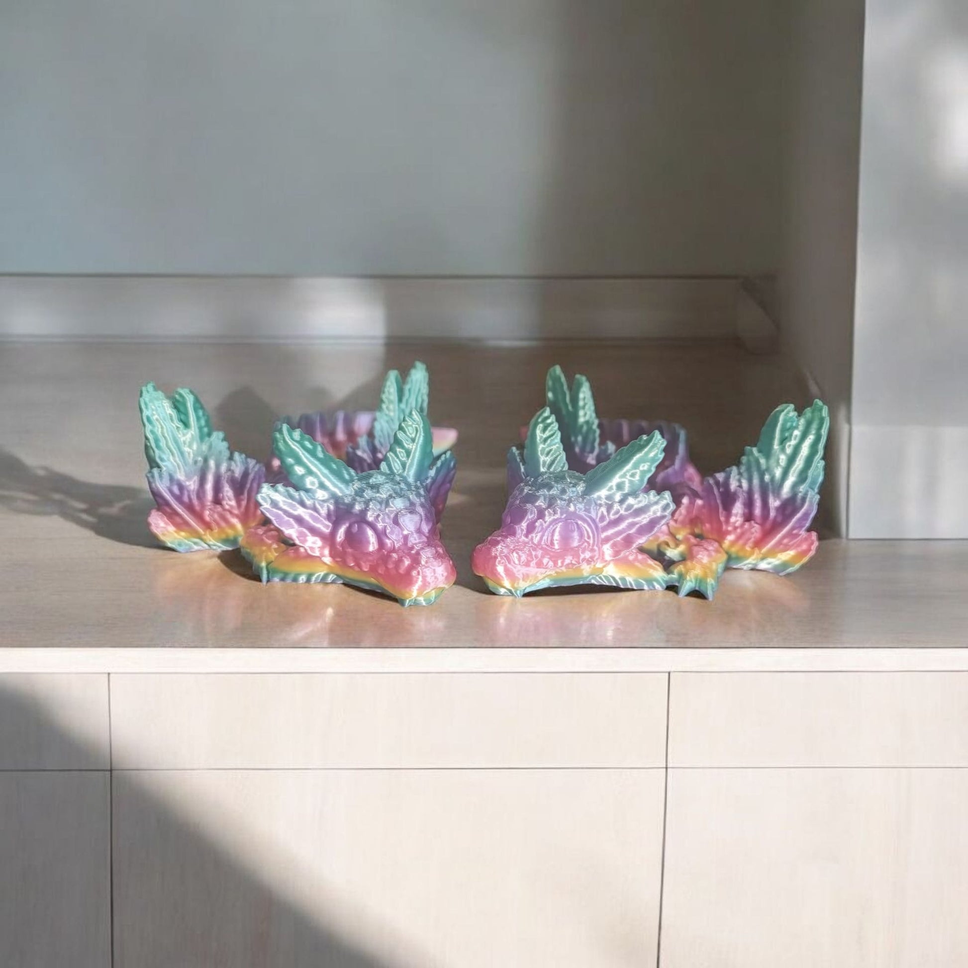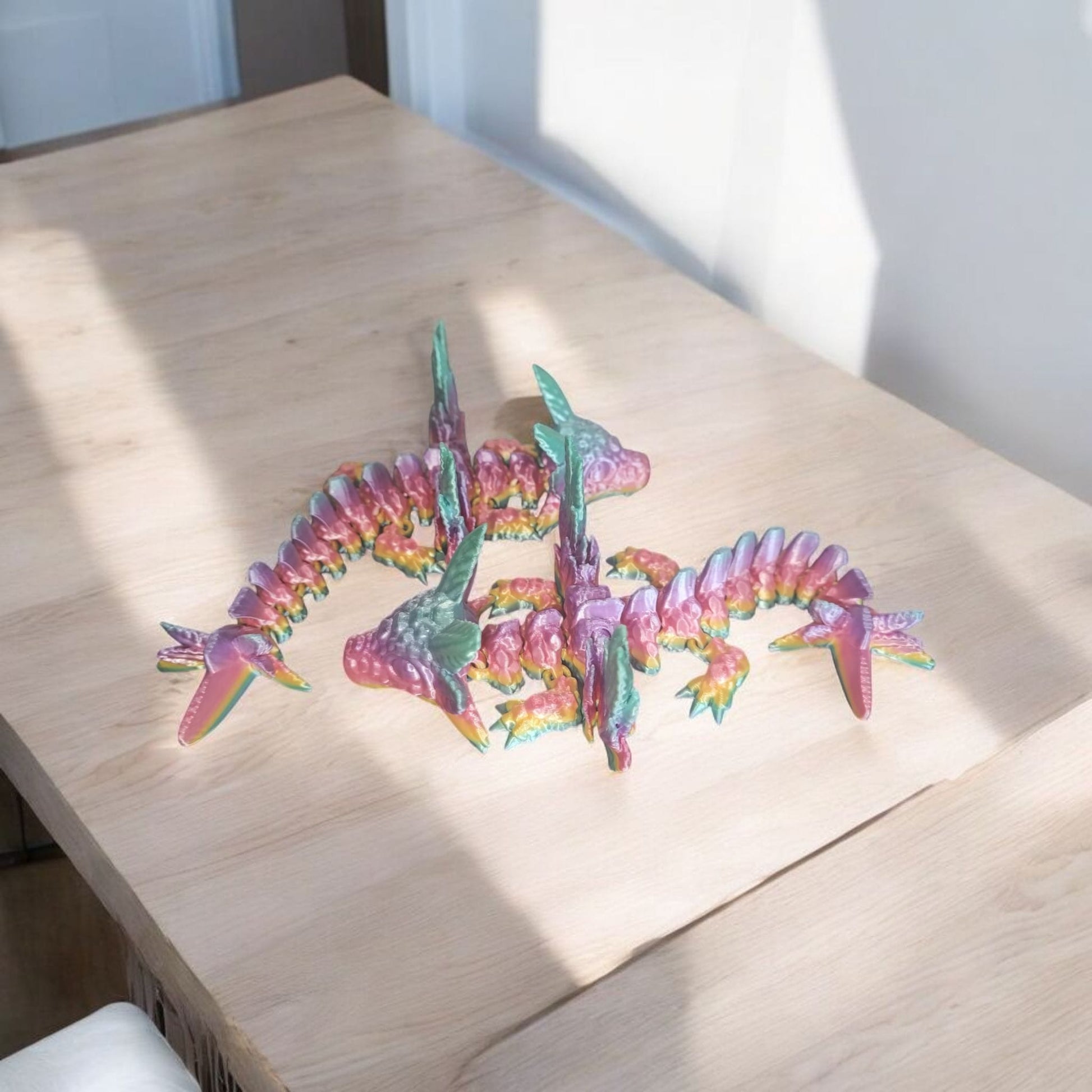 Dieses detailreiche 3D-gedruckte Deko-Objekt wurde mit Präzision gefertigt und vereint Eleganz mit spielerischer Beweglichkeit. Dank seines flexiblen Designs lässt sich der Drache geschmeidig bewegen und ist ein echter Blickfang für jedes Regal oder Schreibtisch.