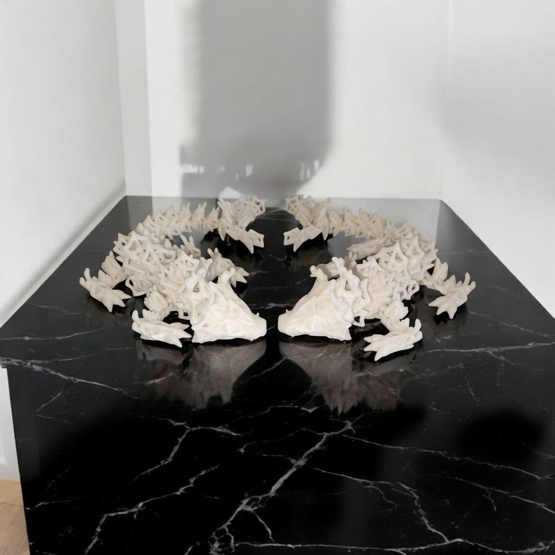 Dieses detailreiche 3D-gedruckte Deko-Objekt wurde mit Präzision gefertigt und vereint Eleganz mit spielerischer Beweglichkeit. Dank seines flexiblen Designs lässt sich der Drache geschmeidig bewegen und ist ein echter Blickfang für jedes Regal oder Schreibtisch.