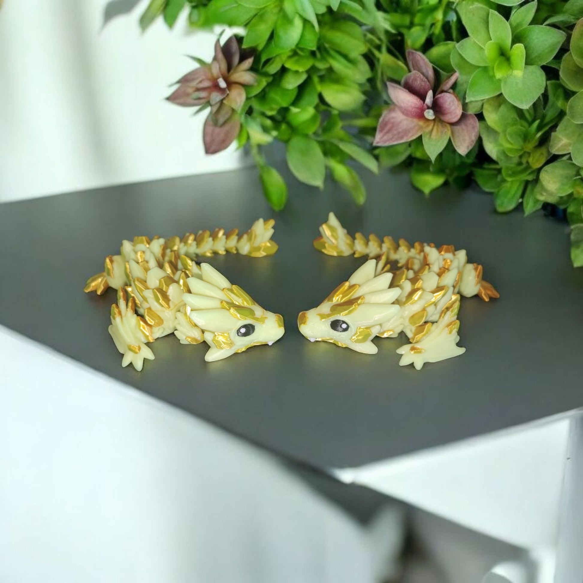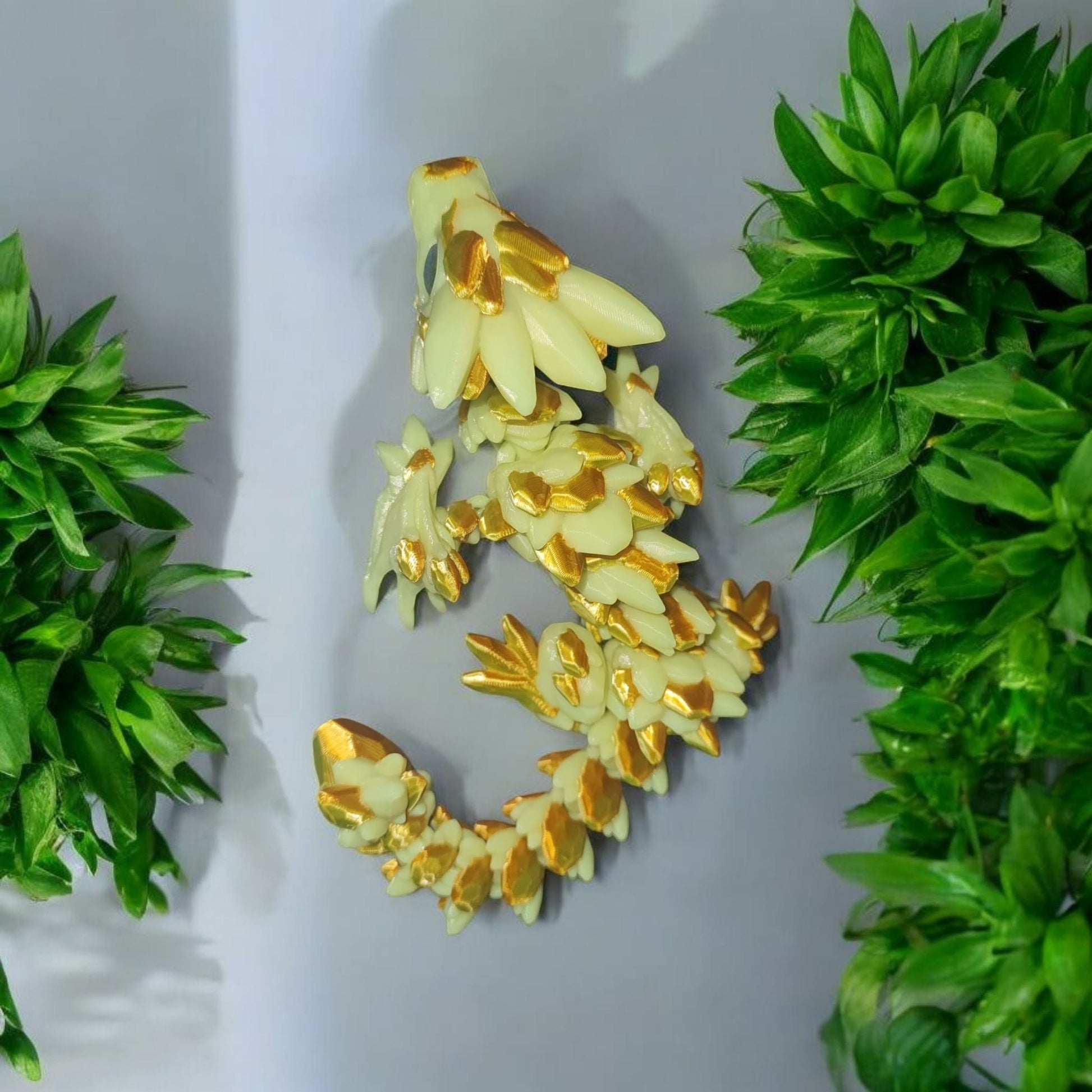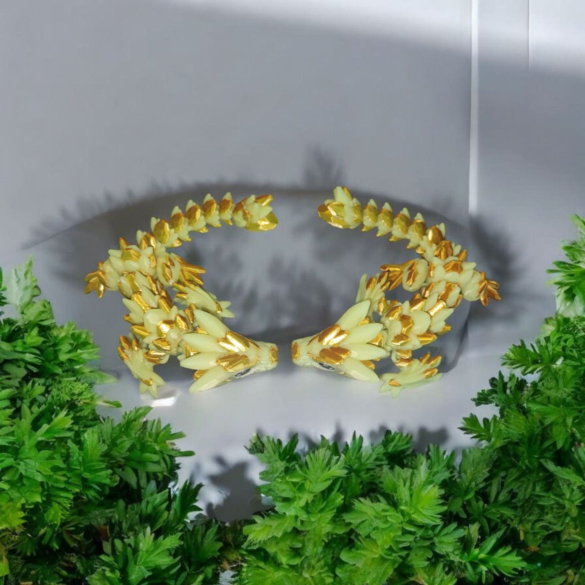 Art 059 Flexi Edelstein-Drache | 3D-gedruckter beweglicher Drache | ca. 21,5 cm lang | PLA Hellgelb - Silk Gold Deko & Geschenk für Fantasy-Fans Art 059
