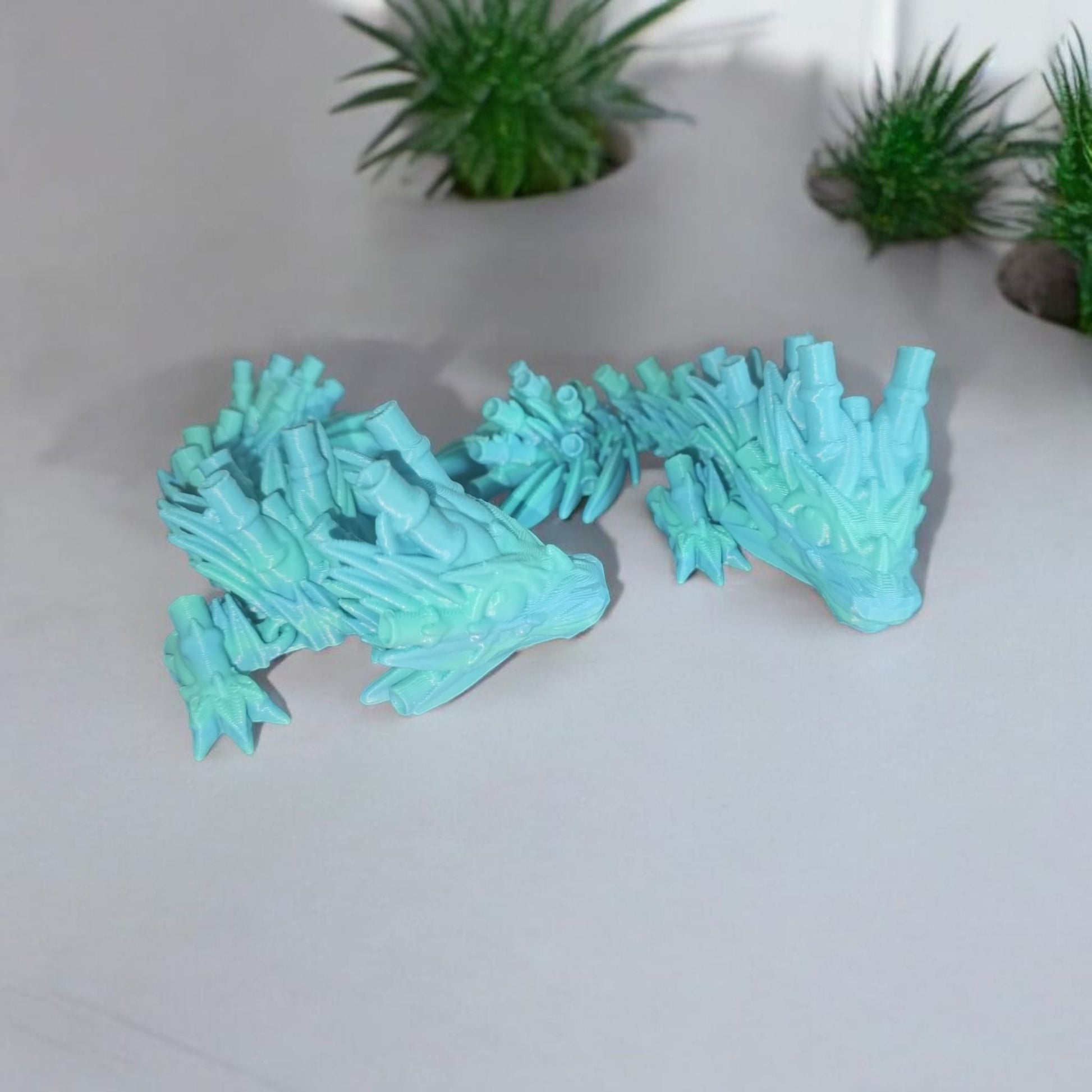 Dieses detailreiche 3D-gedruckte Deko-Objekt wurde mit Präzision gefertigt und vereint Eleganz mit spielerischer Beweglichkeit. Dank seines flexiblen Designs lässt sich der Drache geschmeidig bewegen und ist ein echter Blickfang für jedes Regal oder Schreibtisch.