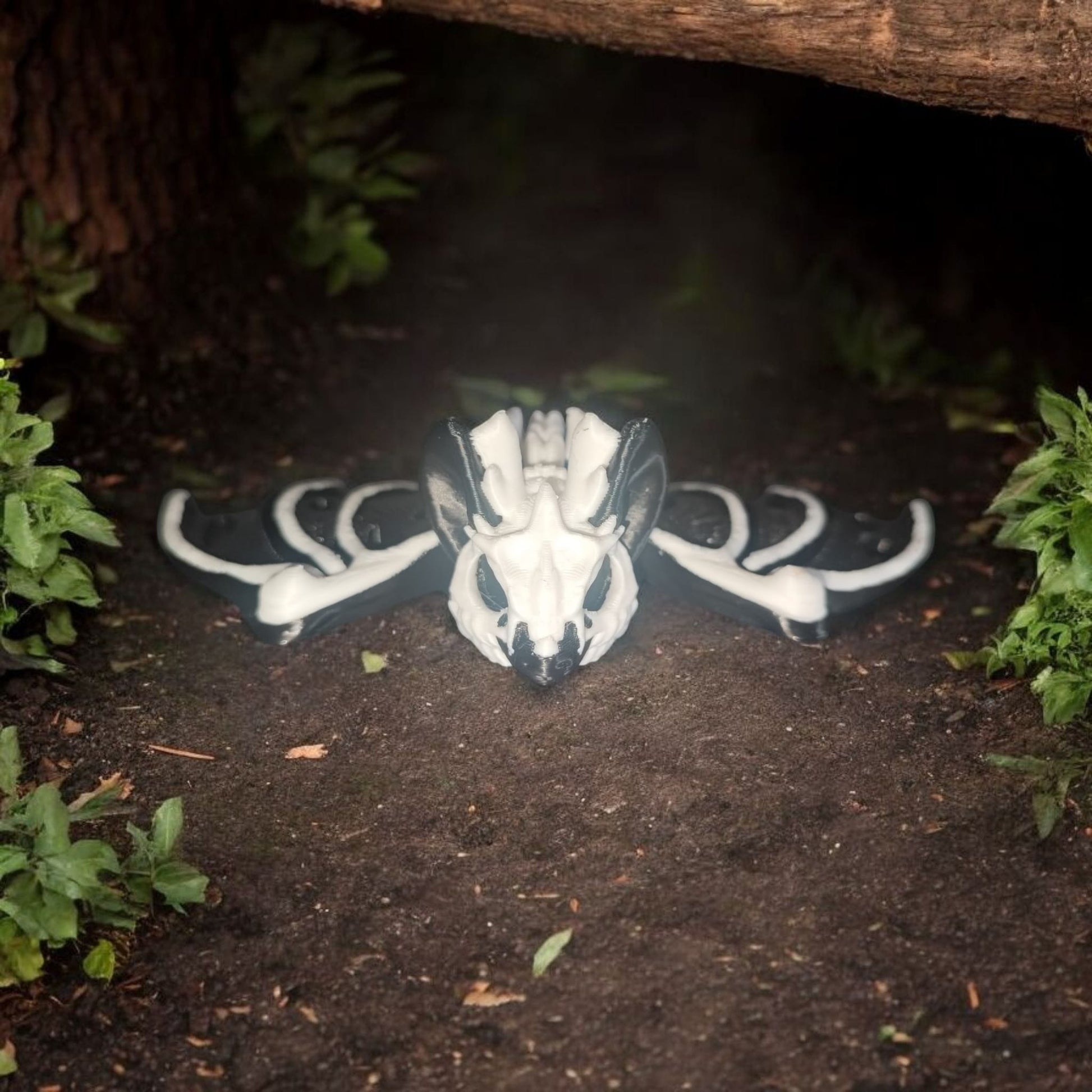 Art.037 Flexi Horror Fledermaus | 3D-gedruckter beweglich | 14cm breit - 7cm lang cm lang | PLA schwarz/weiß Deko & Geschenk für Fantasy-Fans Art.037