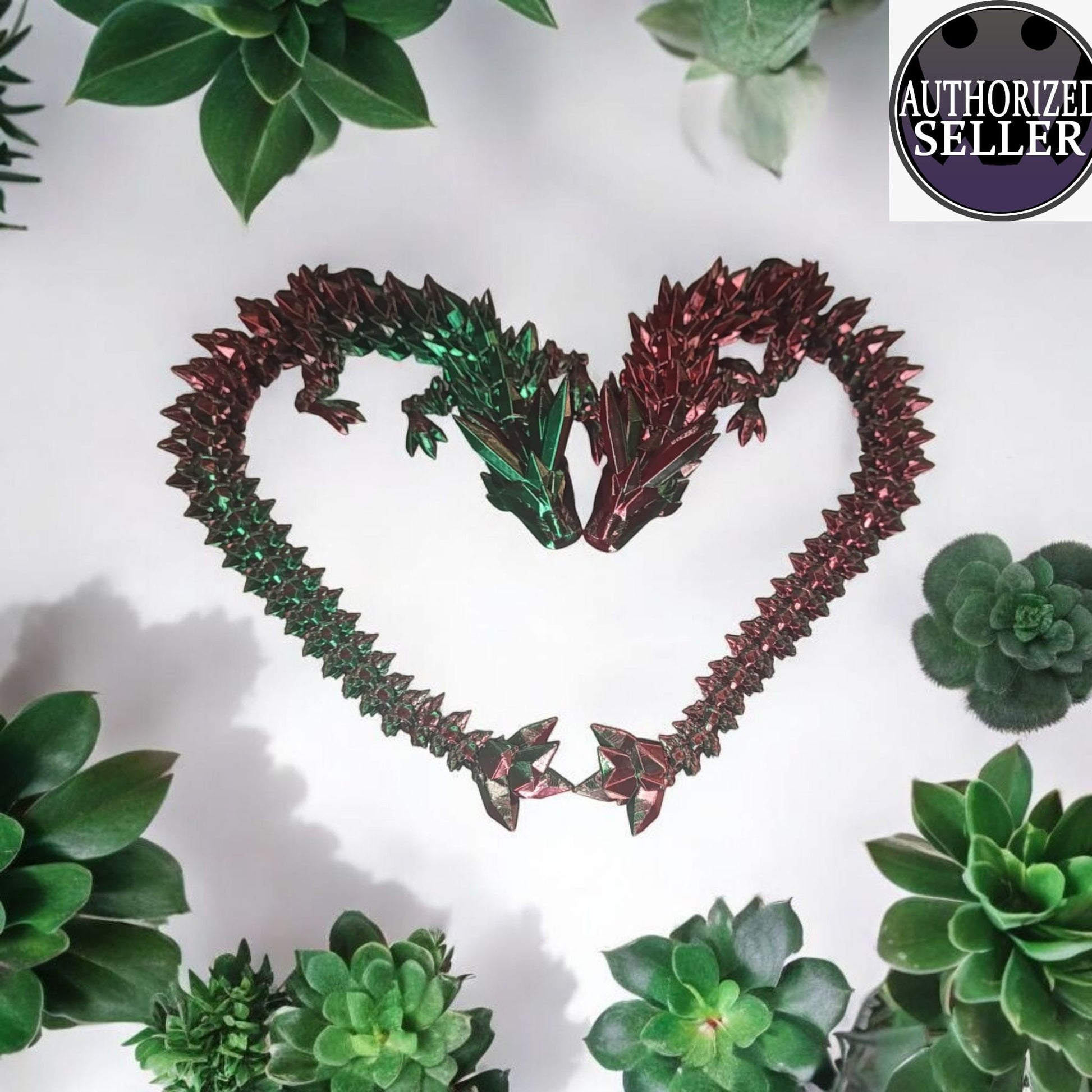 Art.030 Flexi Kristalldrache| 3D-gedruckter beweglicher Drache | 24,0 cm lang | PLA Silk grün/rot Deko & Geschenk für Fantasy-Fans Art.030