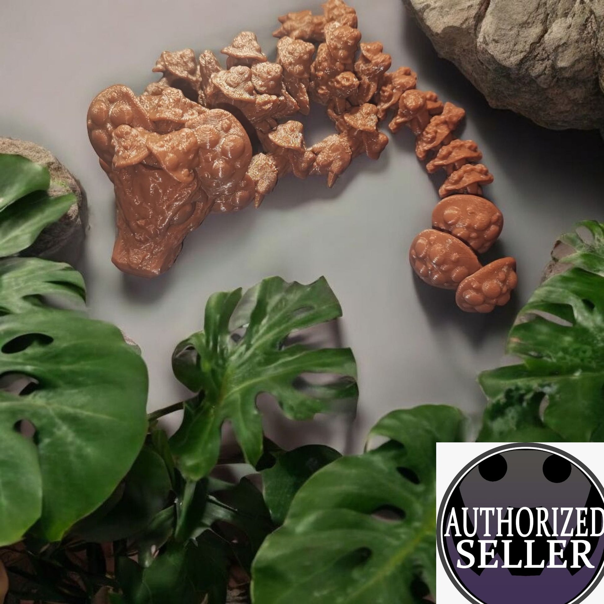 Art.010 Flexi Pilz Drache| 3D-gedruckter beweglicher Drache | 23 cm lang | PLA braun Deko & Geschenk für Fantasy-Fans Art.010