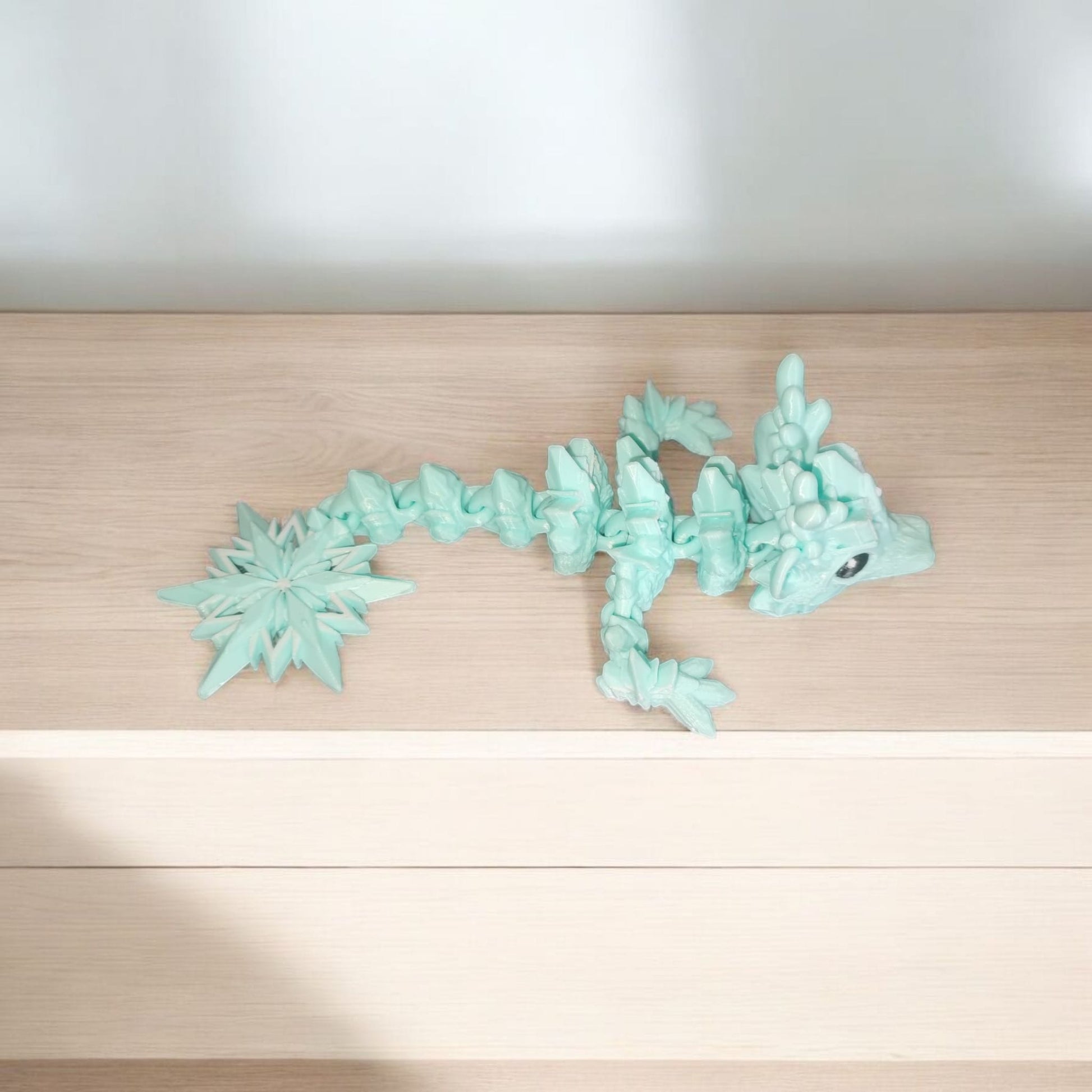 Art 074 Flexi Winter-Drache | 3D-gedruckter beweglicher Drache | ca. 19 cm lang | PLA Mint-Weiß Deko & Geschenk für Fantasy-Fans Art 074