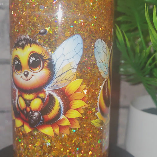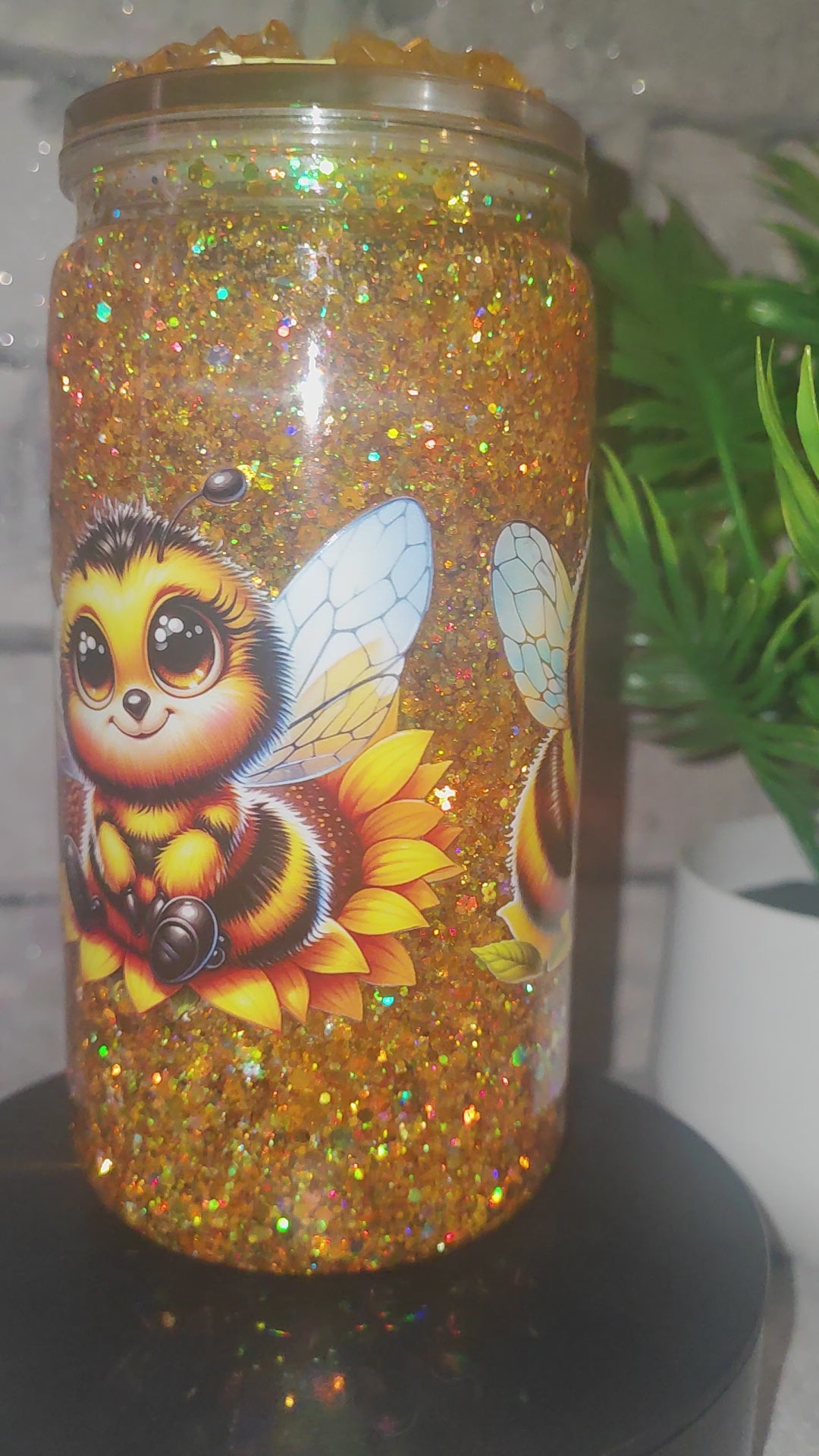 Glitzer mit UV Dtf Aufkleber inkl Strohhalm Kunststoff Bienen