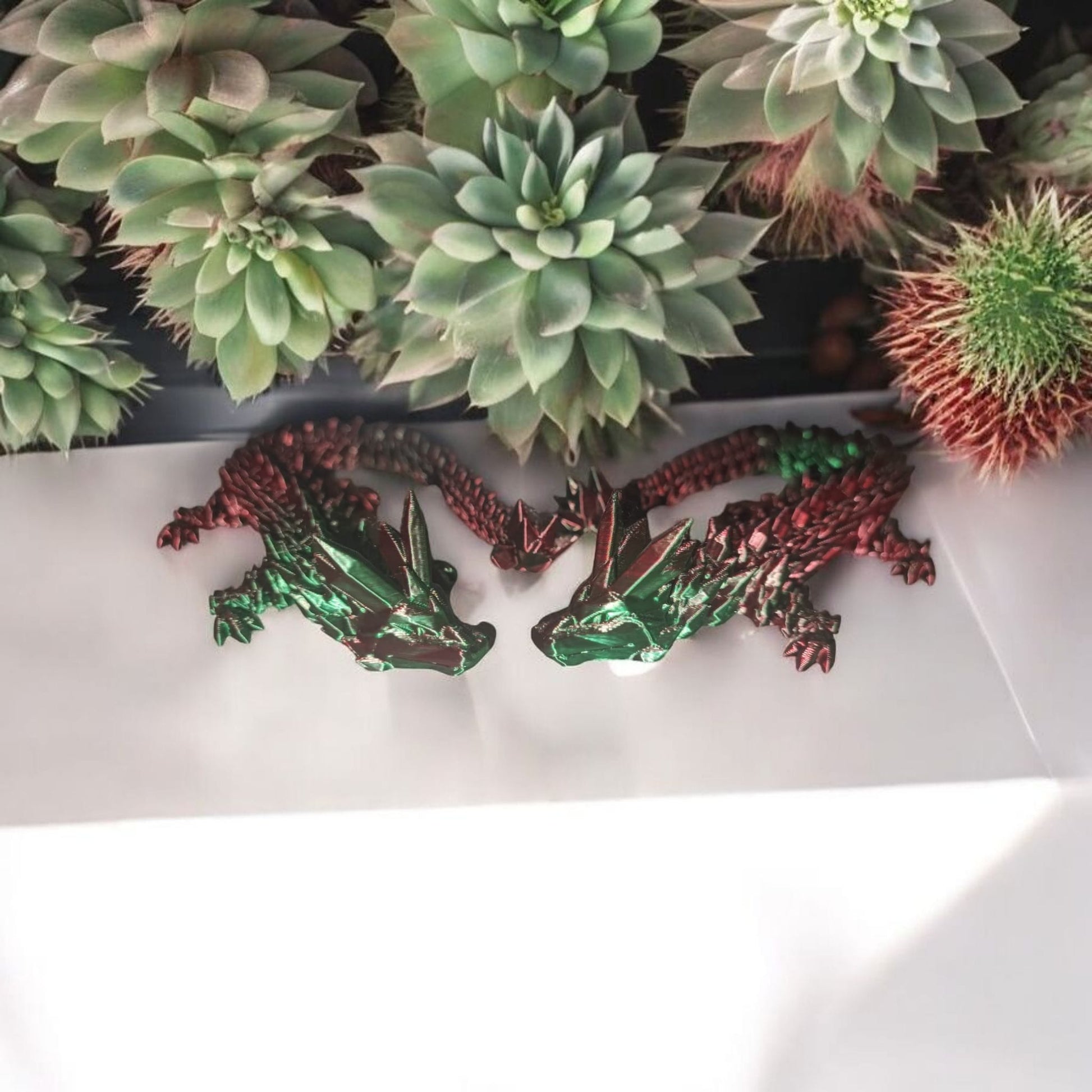 Art.029 Großer Flexi Kristalldrache| 3D-gedruckter beweglicher Drache | 44,0 cm lang | PLA Silk grün/rot Deko & Geschenk für Fantasy-Fans Art.029