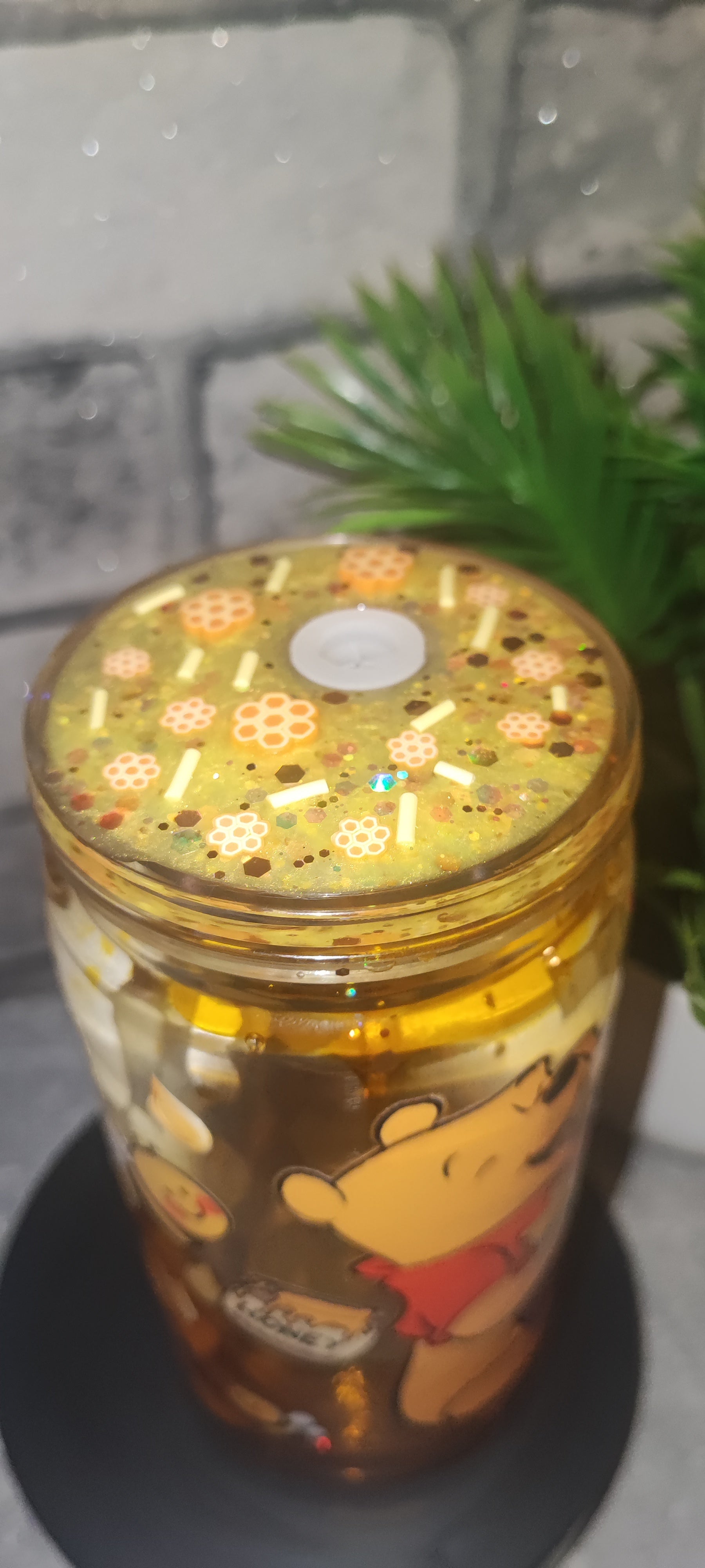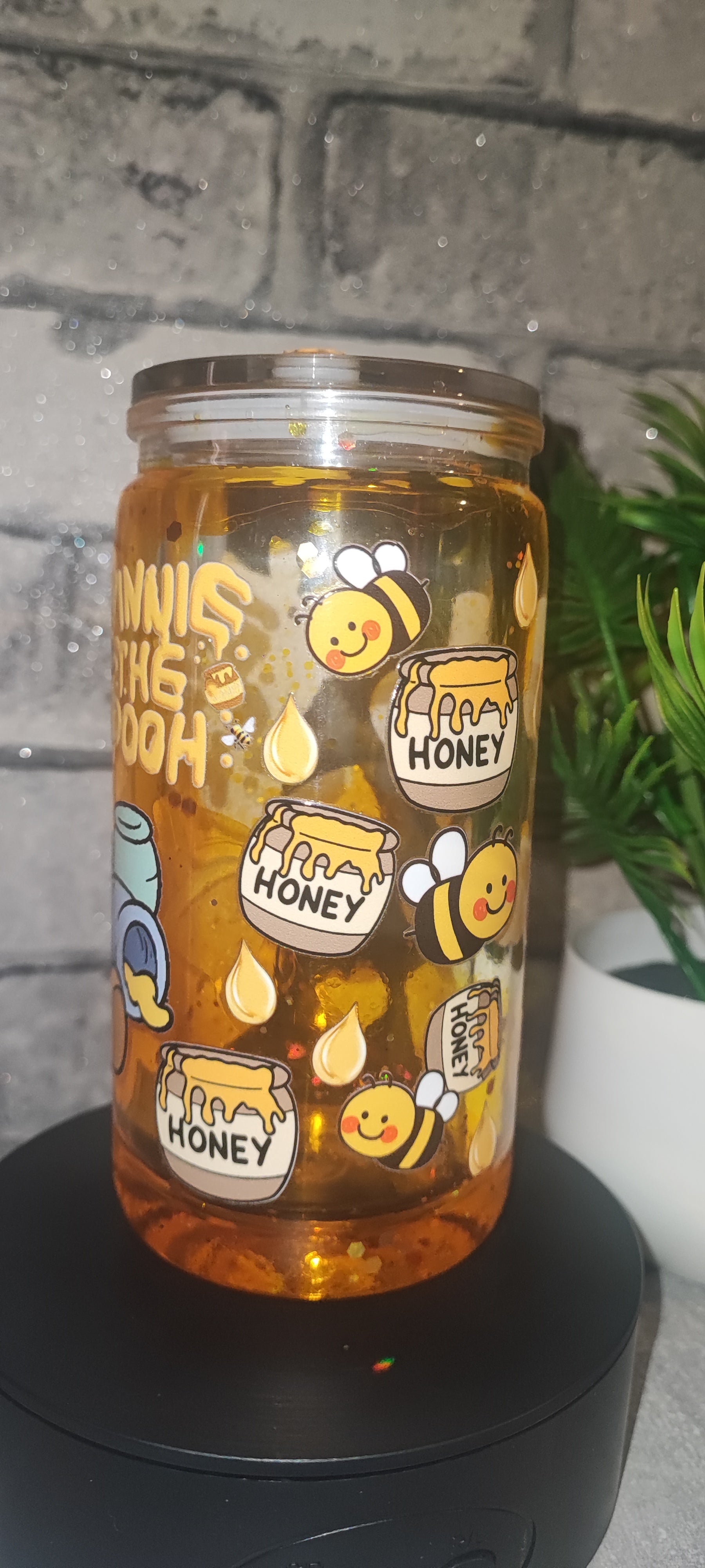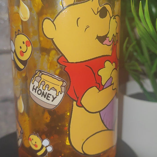 Honig Effekt Becher mit UV Dtf Aufkleber inkl Strohhalm - Bär Kunststoff
