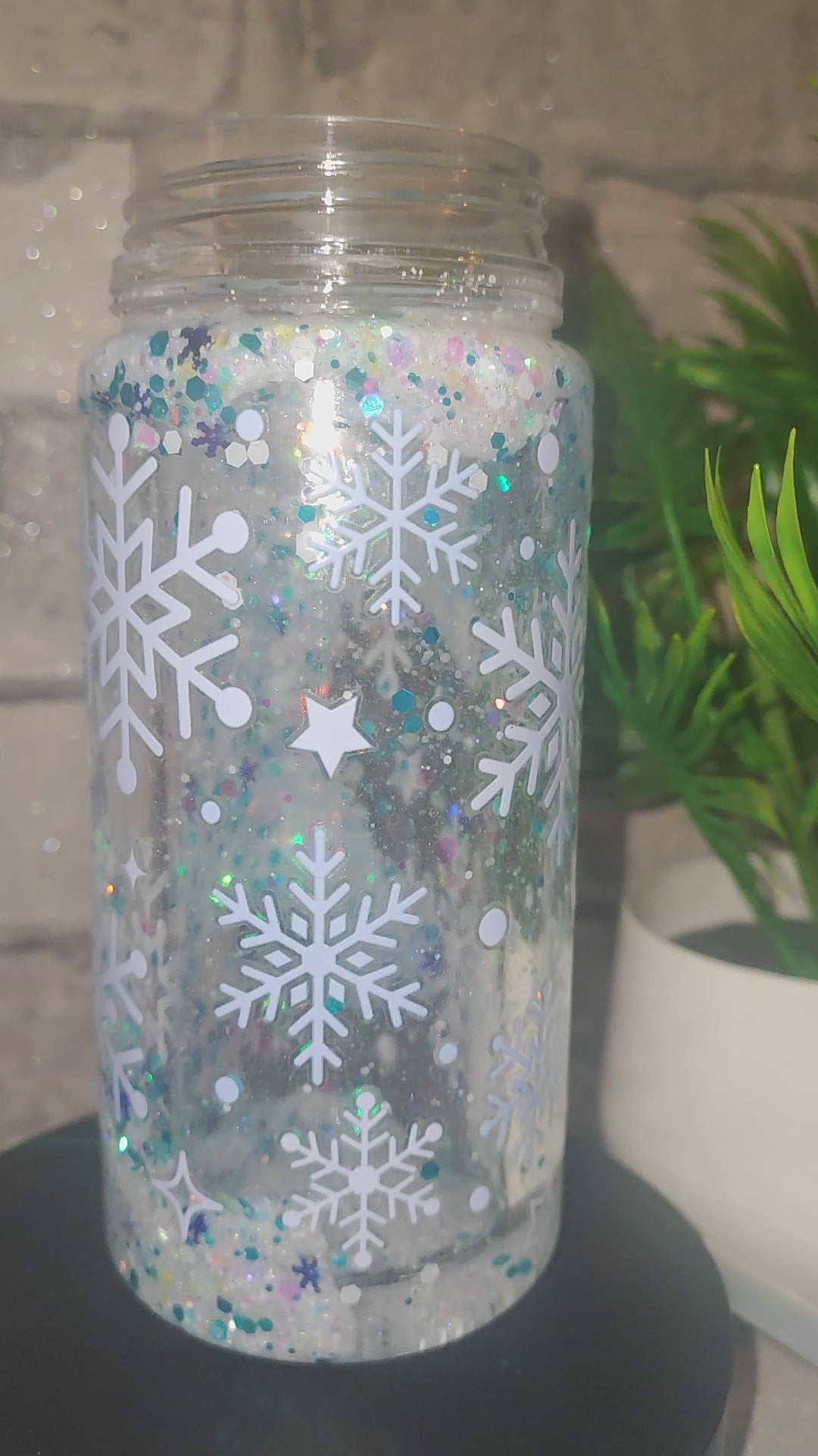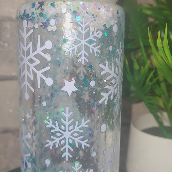 Kinderflasche mit "Lava" Effekt Svhee, Schneeflocken inkl UV Dtf Aufkleber