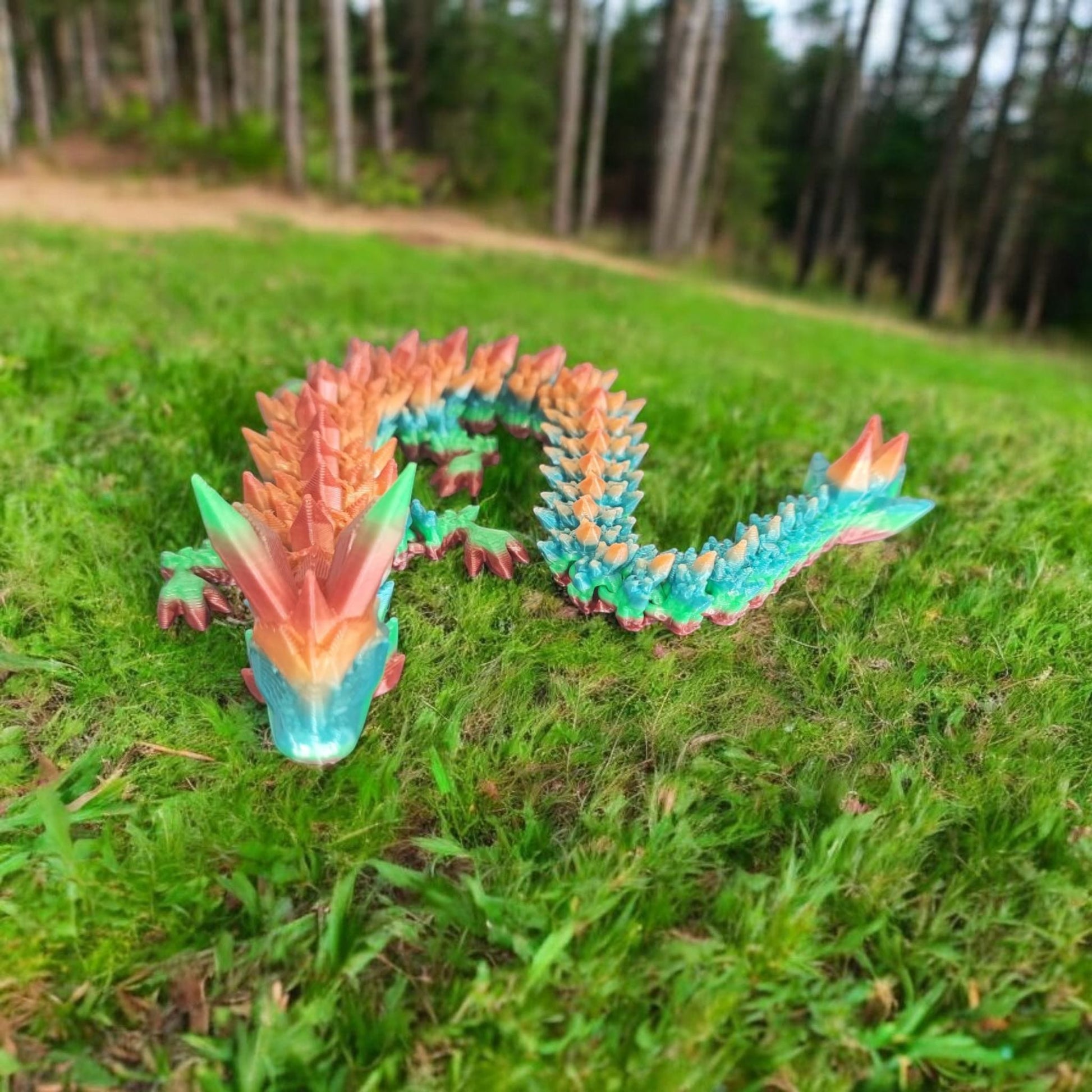 Artikel 003 Kleiner Flexi Kristalldrache | 3D-gedruckter beweglicher Drache | 24,0 cm lang | PLA Regenbogen Deko & Geschenk für Fantasy-Fans