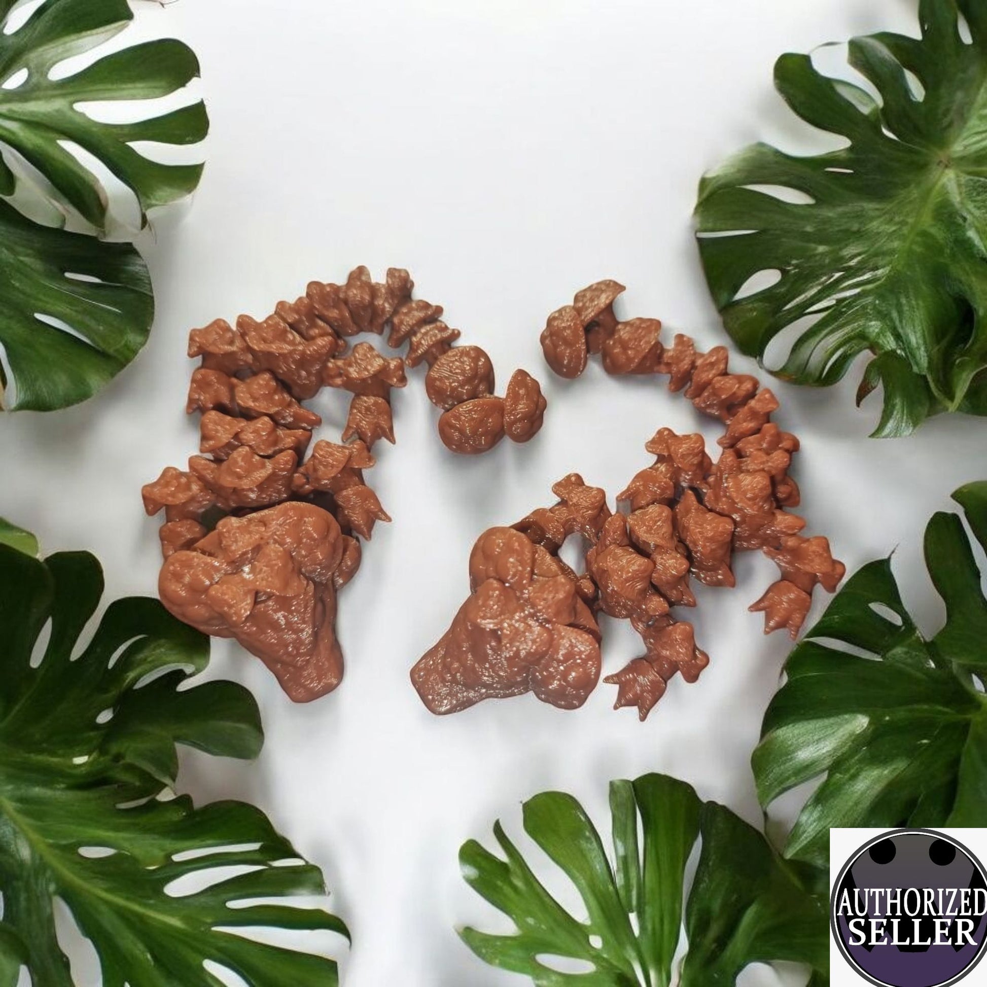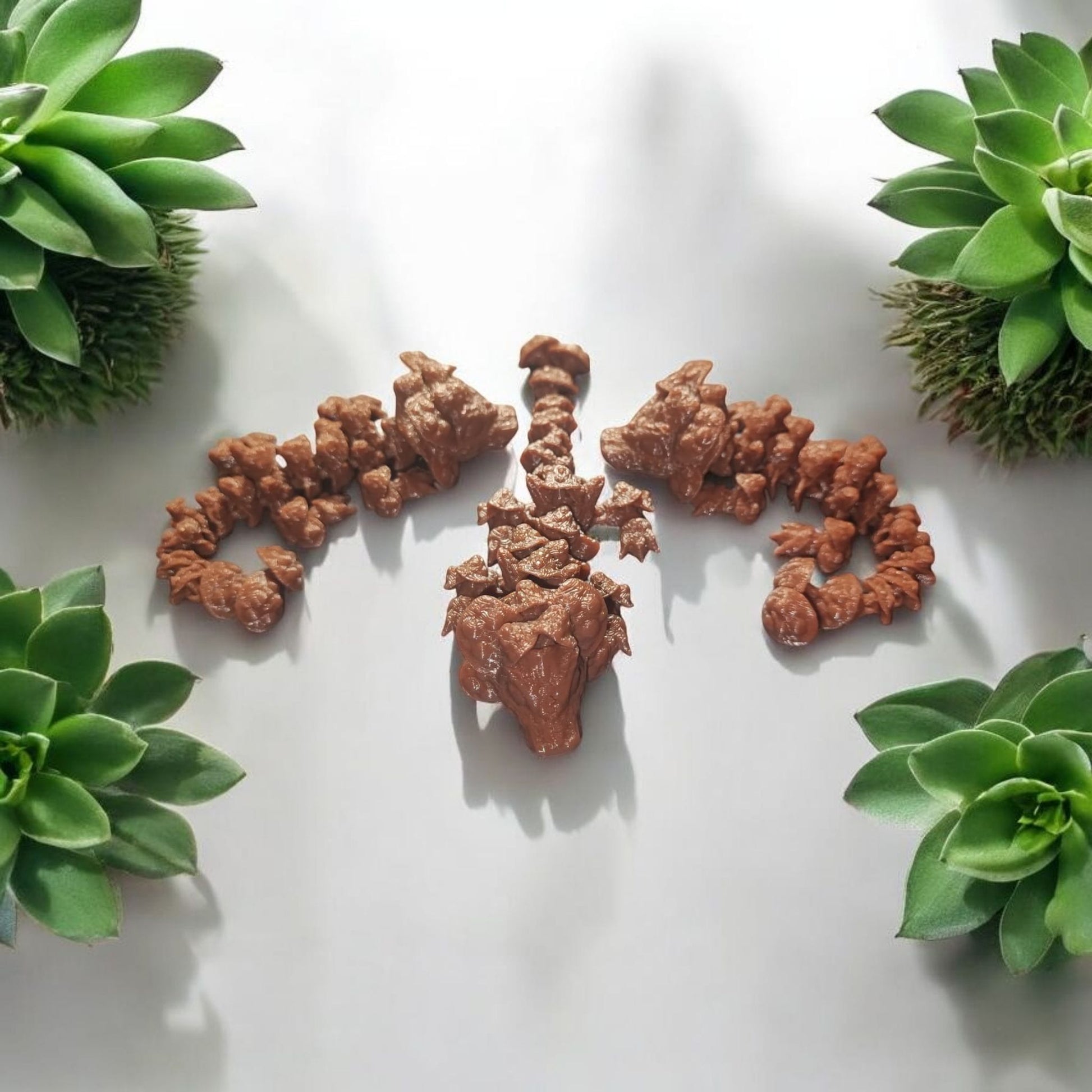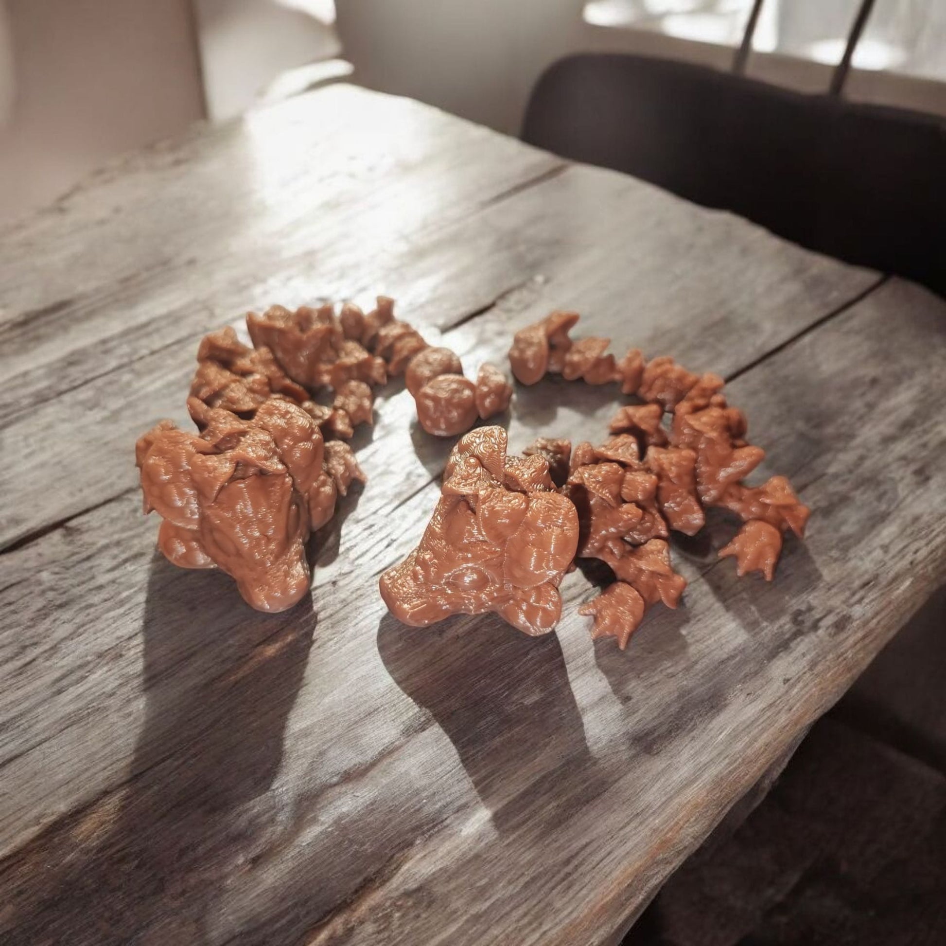 Art.012 Kleiner Flexi Pilz Drache| 3D-gedruckter beweglicher Drache | 11,5cm lang | PLA braun Deko & Geschenk für Fantasy-Fans Art.012