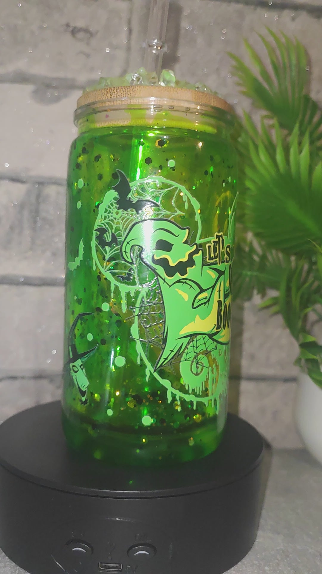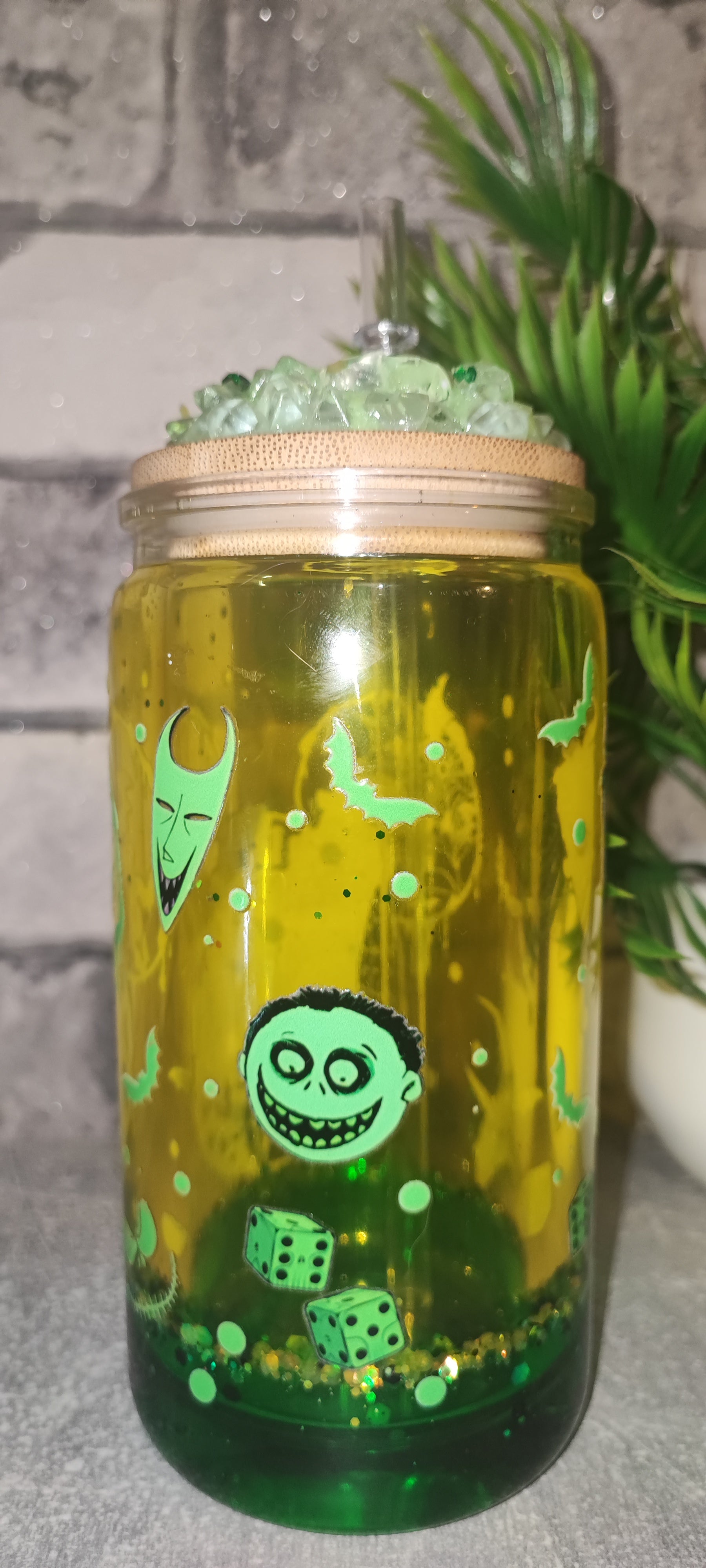 Grün/Gelb Lava Becher mit Deko Deckel leuchtend inkl Strohhalm - Kunststoff - Geist