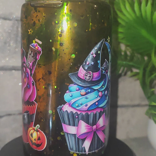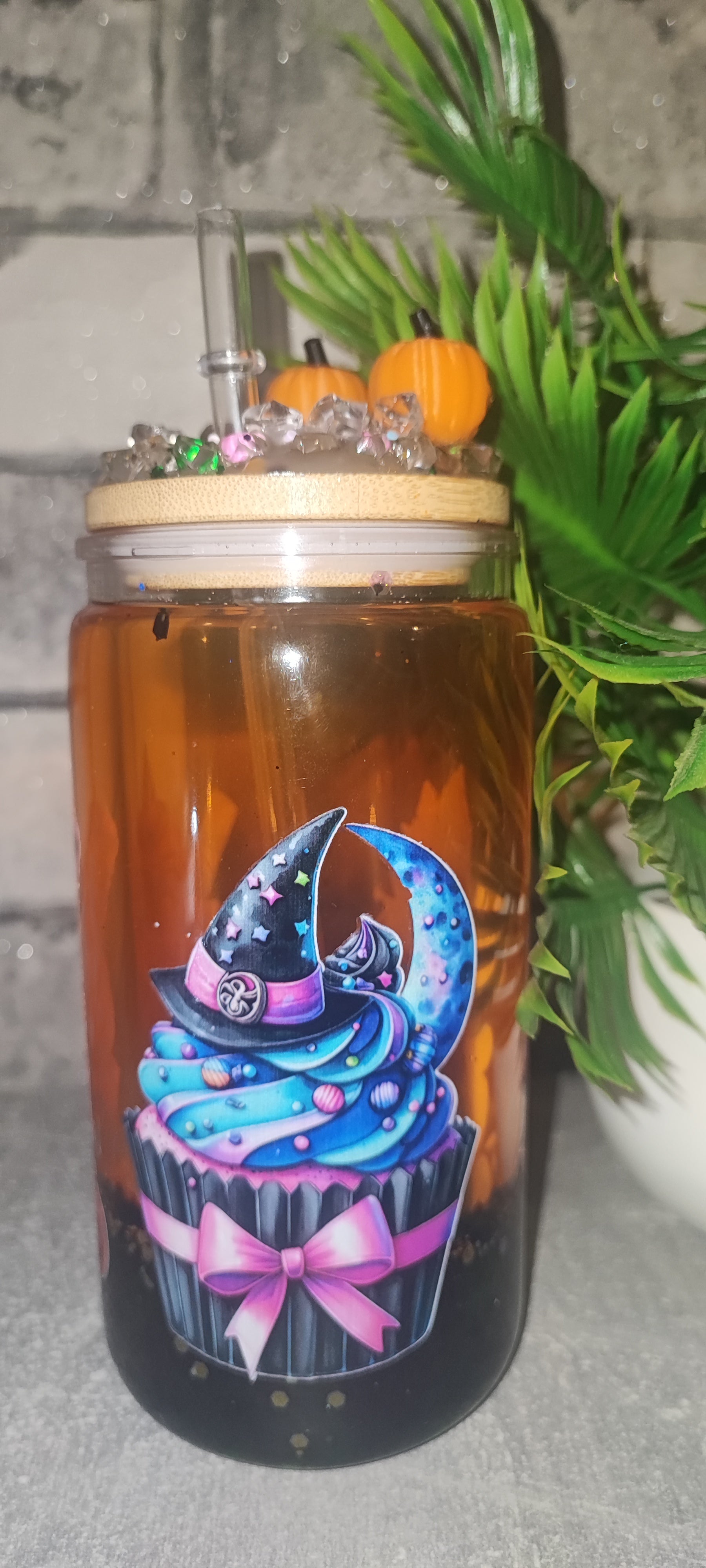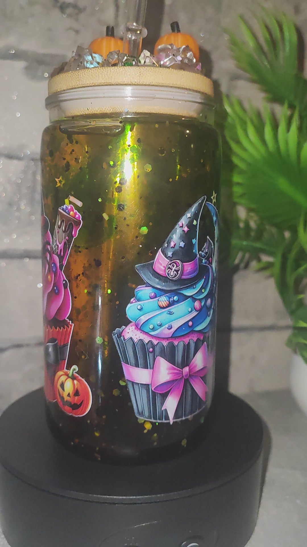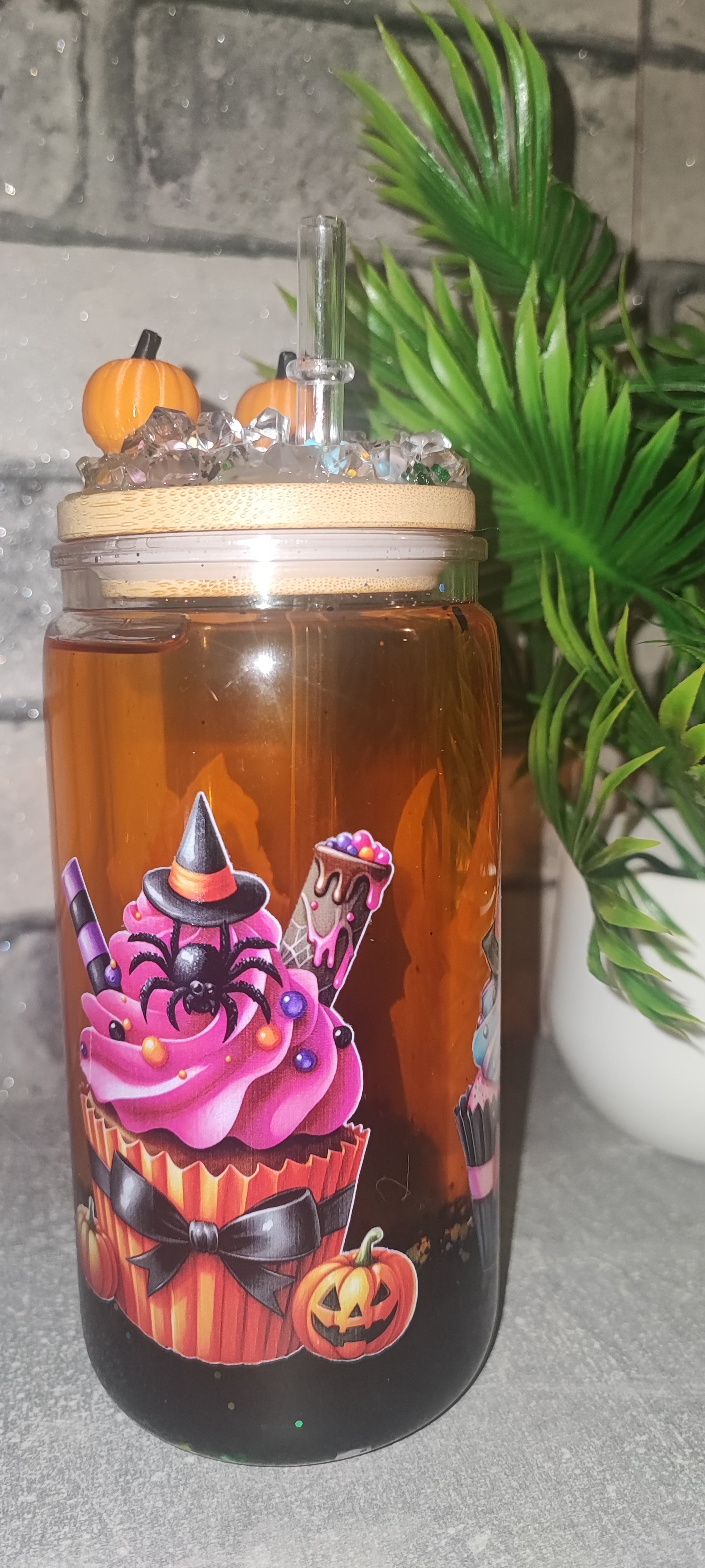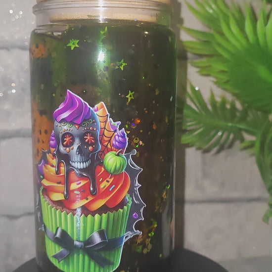 Deckel mit Deko Eiswürfeln und 3D gedruckten Kürbissen