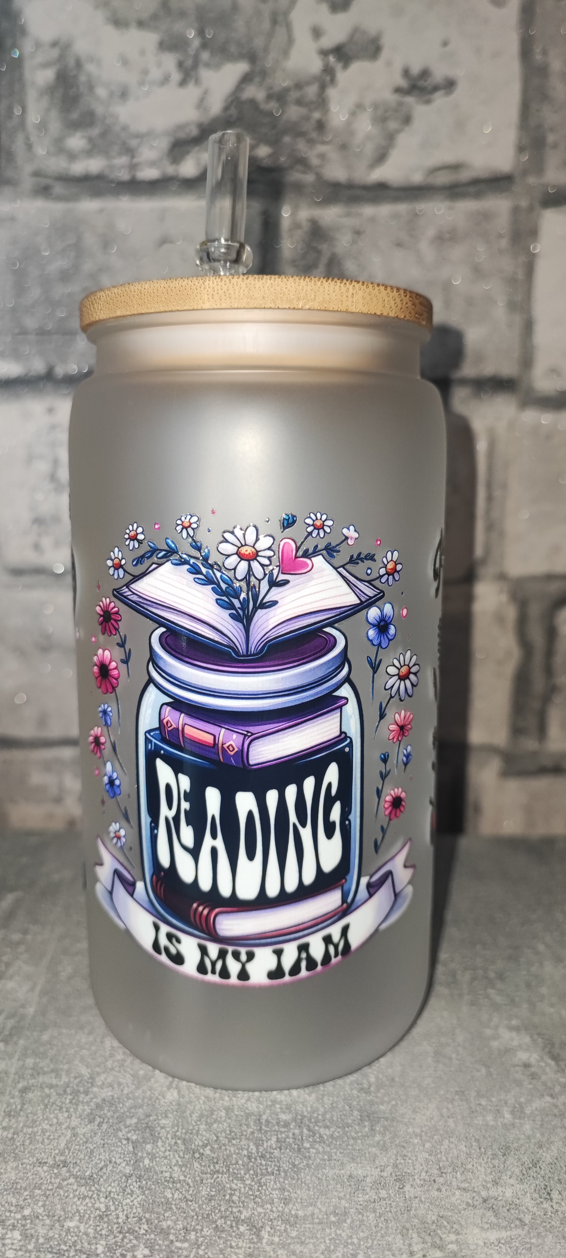 Matter Becher mit Bambus Deckel +Buch UV Dtf Aufkleber inkl Strohhalm - Kunststoff - Bücher